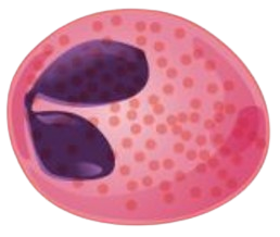 | Leukocytes (white blood cells) | Granulocytes including neutrophils, eosinophils, and basophils | 4360 (1800-9950) | Abundant granules in cytoplasm; nucleus normally lobed | Nonspecific (innate) resistance to disease | Classified according to membrane-bound granules in cytoplasm |