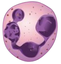 | Leukocytes (white blood cells) | Neutrophils | 4150 (1800-7300) | Nuclear lobes increase with age; pale lilac granules | Phagocytic; particularly effective against bacteria. Release cytotoxic chemicals from granules | Most common leukocyte; lifespan of minutes to days |