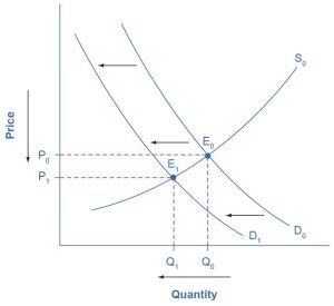 In a perfectly competitive market, each firm produces at a quantity where price is set equal to marginal cost, both in the short and long run. This outcome is why perfect competition displays allocative efficiency: the social benefits of additional production, as measured by the marginal benefit, which is the same as the price, equal the marginal costs to society of that production. In a monopolistically competitive market, the rule for maximizing profit is to set MR = MC—and price is higher than marginal revenue, not equal to it because the demand curve is downward sloping. When P > MC, which is the outcome in a monopolistically competitive market, the benefits to society of providing additional quantity, as measured by the price that people are willing to pay, exceed the marginal costs to society of producing those units. A monopolistically competitive firm does not produce more, which means that society loses the net benefit of those extra units. This is the same argument we made about monopoly, but in this case the allocative inefficiency will be smaller. Thus, a monopolistically competitive industry will produce a lower quantity of a good and charge a higher price for it than would a perfectly competitive industry. See the following Clear It Up feature for more detail on the impact of demand shifts.